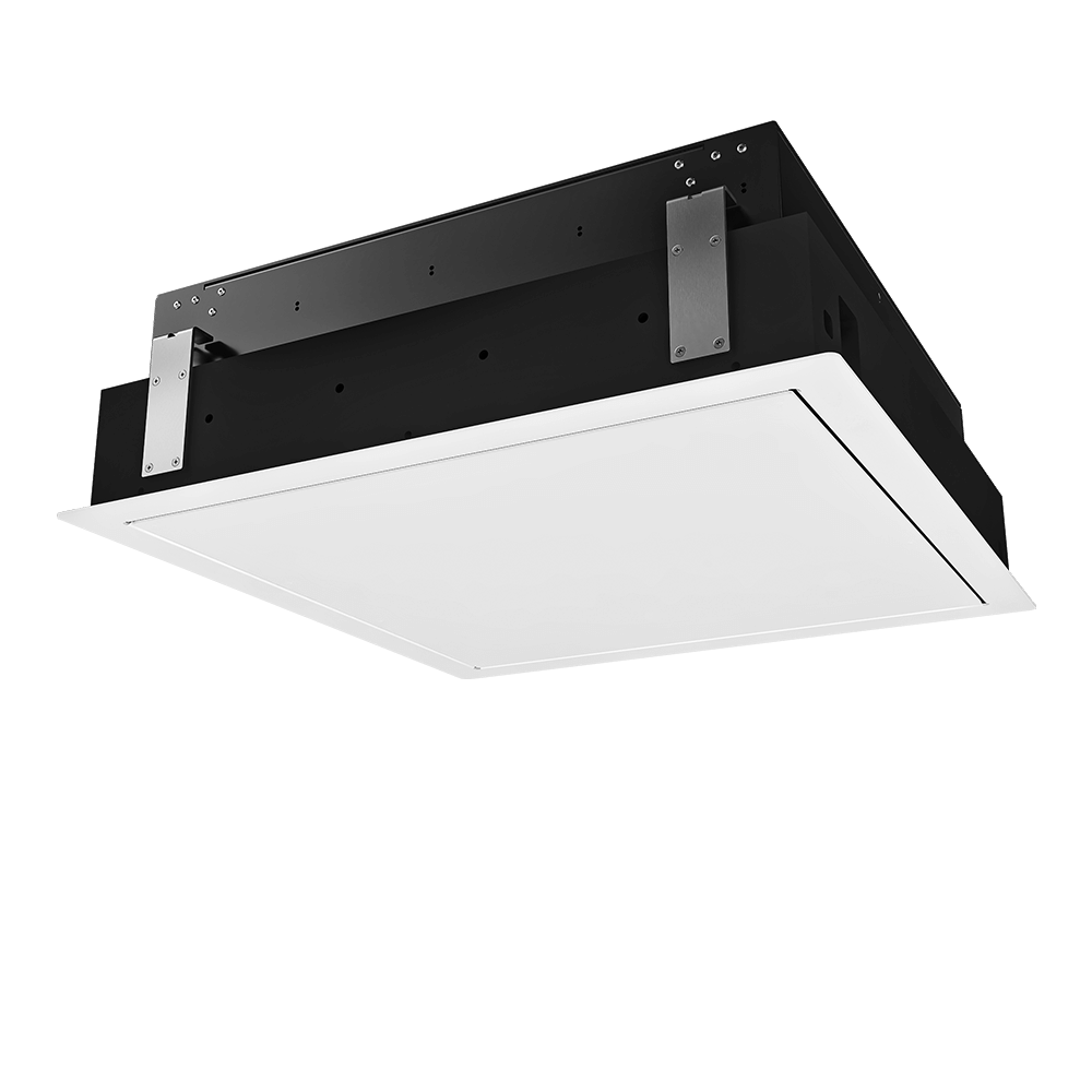 Rama PDR-COM została zaprojektowana do sufitów podwieszanych i komercyjnych. Ta wersja PDR dostarczana jest z uchwytami umożliwiającymi przymocowanie ramy do konstrukcji szkieletowej, a także z pomalowanym na biało panelem podstawy i listwą wykończeniową, zaprojektowanymi tak, aby idealnie pasowały do konstrukcji sufitów podwieszanych.