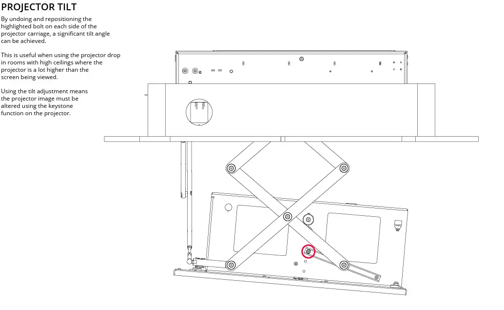 Zachowano najważniejsze cechy poprzedniej wersji PD, takie jak łańcuch do zarządzania kablami, nożyce ze szczotkowanego aluminium, regulowany montaż projektora, pochylenie wózka projektora (tylko PDR2) i regulowane opcje odległości upadku z sufitu.