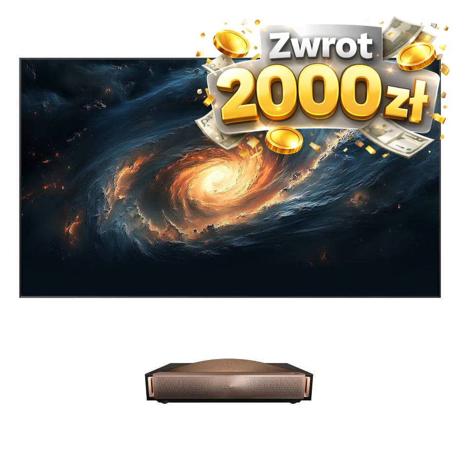 Ultrakrótki rzut 0,18:1 tworzy ogromny obraz z kilku centymetrów od ekranu. Silnik LPU® Digital Laser Engine 2.0 z potrójnym laserem RGB oraz 4K AI Picture zapewniają wierne kolory (Pantone i SkinTone) oraz automatyczną optymalizację kontrastu, jasności i HDR.