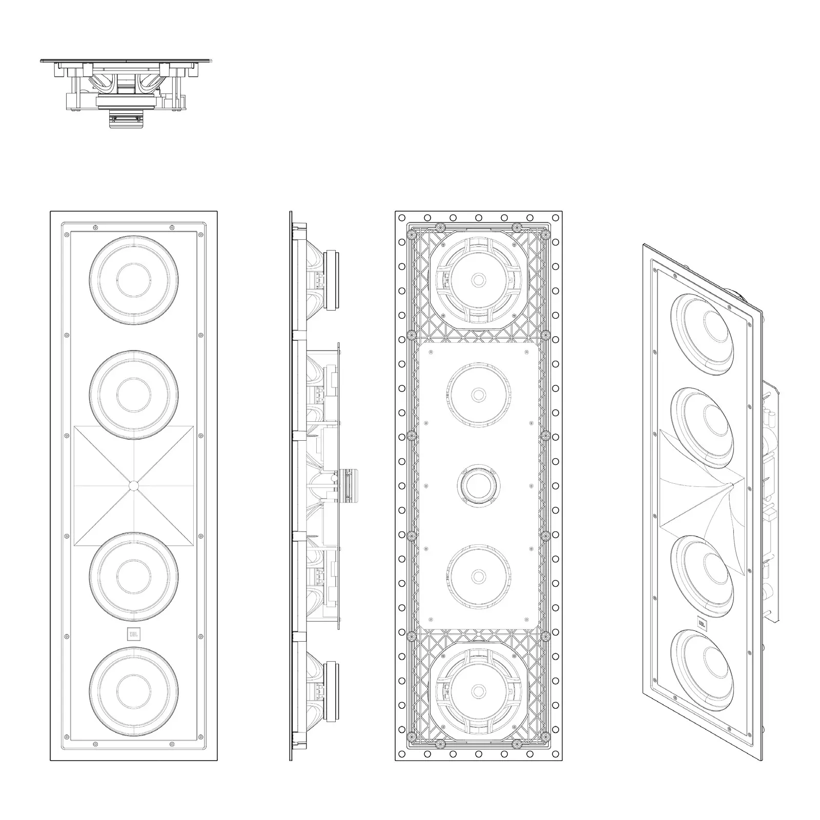 – Czwórka 8-calowych (200 mm) głośników niskotonowych z odlewanymi koszami i membranami Advanced Aluminum Matrix.