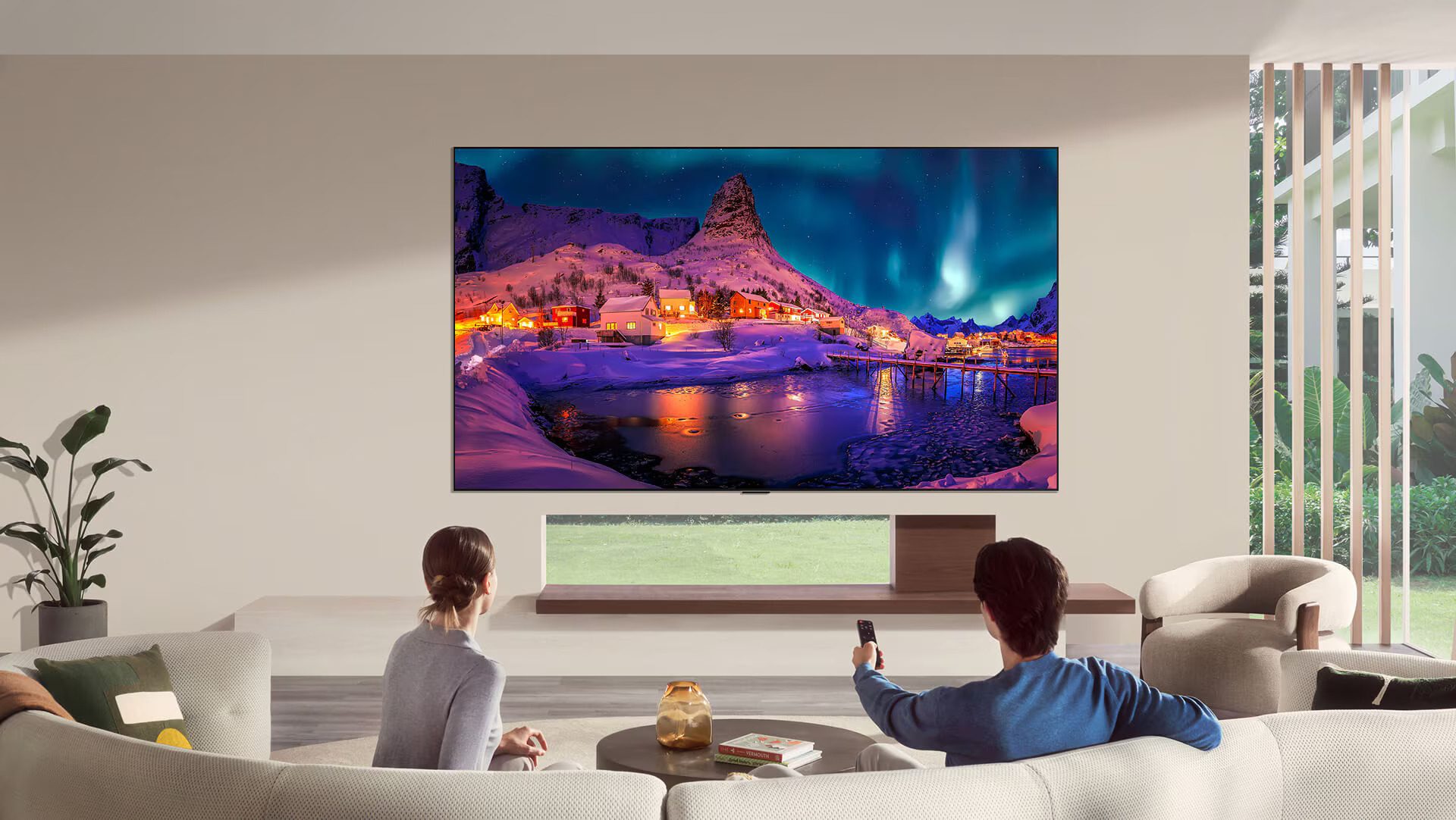 Telewizor wyróżnia się wyjątkowym wzornictwem typu flush-fit, które umożliwia montaż niemal idealnie przylegający do ściany. Dzięki temu 83-calowy ekran staje się naturalną, minimalistyczną ozdobą każdego nowoczesnego wnętrza, tworząc efekt galerii bez nieestetycznych przerw między urządzeniem a ścianą.