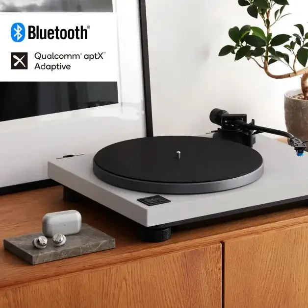 Ciesz się bez ograniczeń dźwiękiem analogowym dzięki wbudowanemu modułowi Bluetooth® — połącz się natychmiast z bezprzewodowymi głośnikami lub słuchawkami, bez konieczności używania kabli ani skomplikowanej konfiguracji.